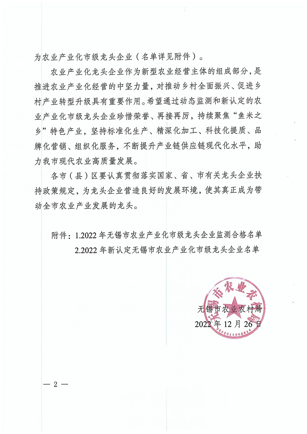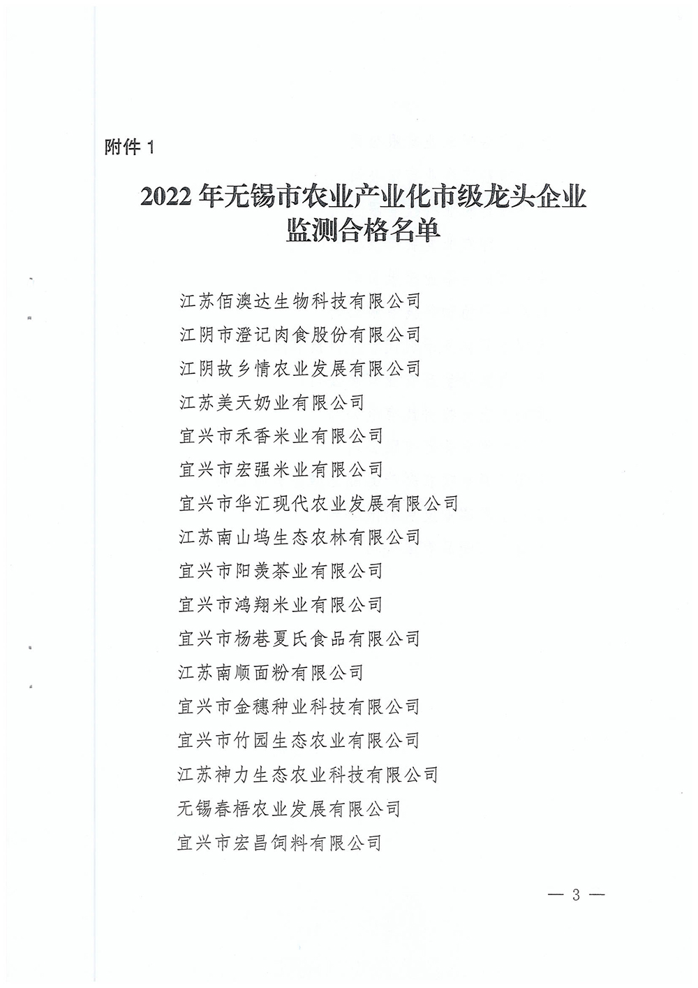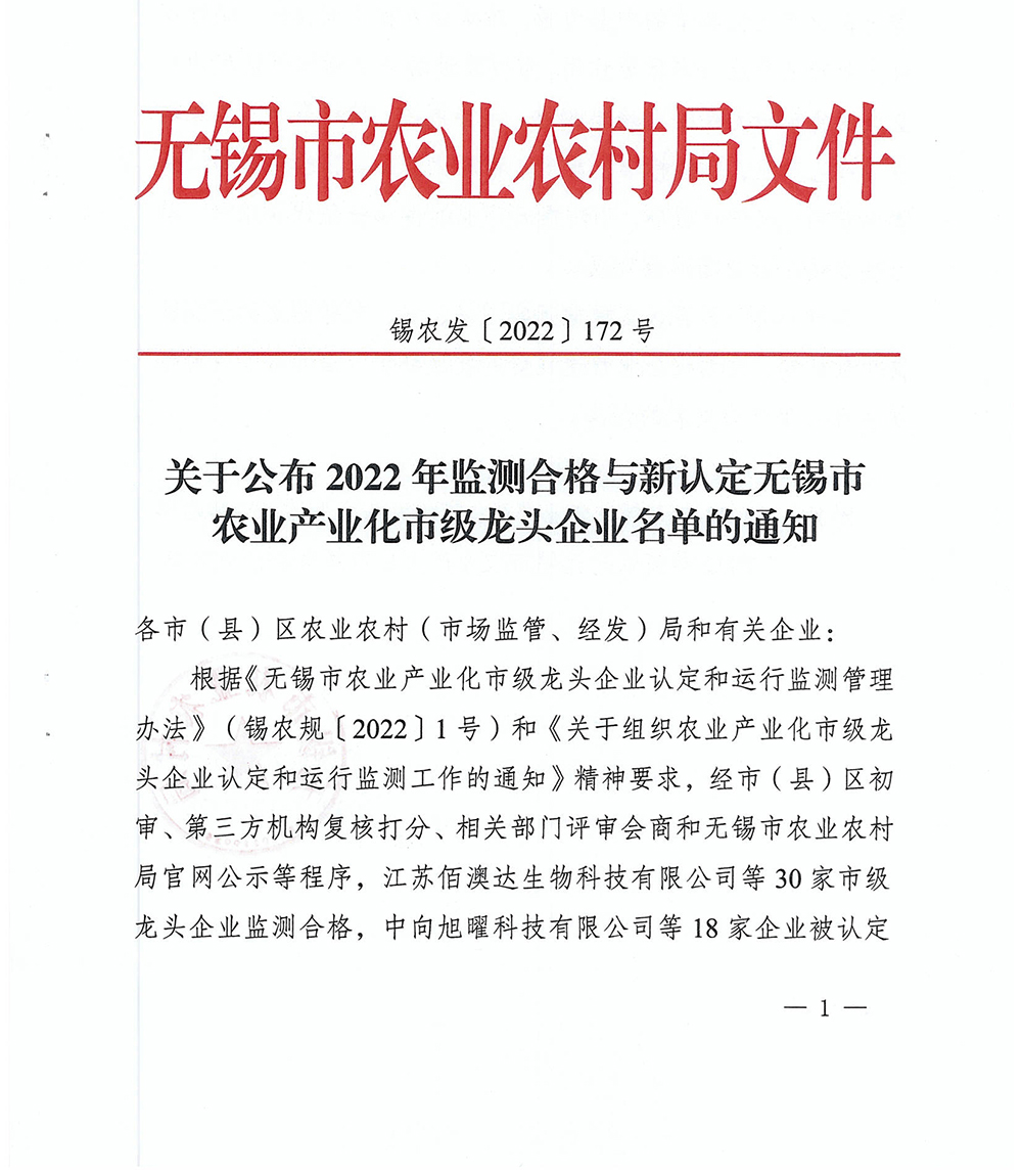 关于公布2022年监测合格与新认定的市级农业产业化龙头企业名单的通知